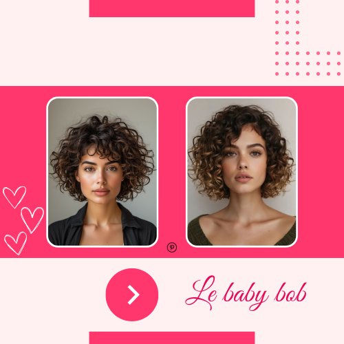 Bonne nouvelle pour les cheveux bouclés : le baby bob s’impose. Coupé au niveau de la mâchoire, il met en valeur la texture naturelle sans chercher à la dompter. L’idée est de sublimer la boucle, pas de la lisser. Résultat : une coupe fraîche, encadrante et ultra flatteuse, qui laisse respirer la matière.
