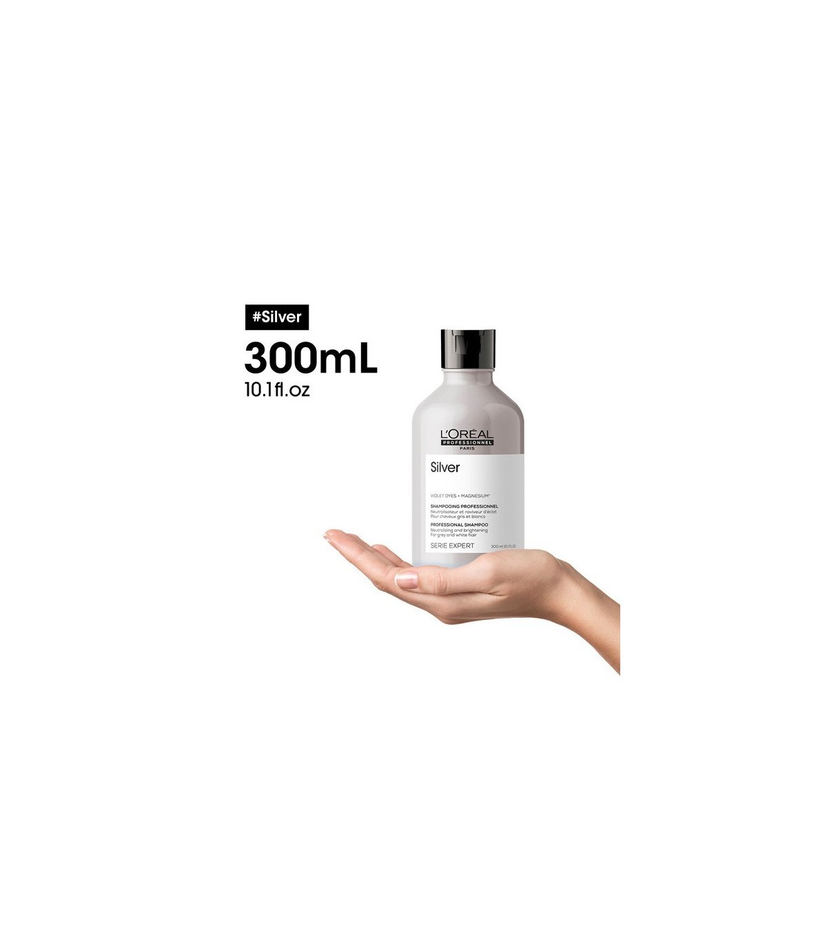 Shampoing 300 mlDécouvrez Shampoing SILVER 300 ml, un shampoing spécialement formulé pour les cheveux blonds, gris ou décolorés. Ce soin unique neutralise les reflets jaunes indésirables tout en nettoyant délicatement les cheveux.