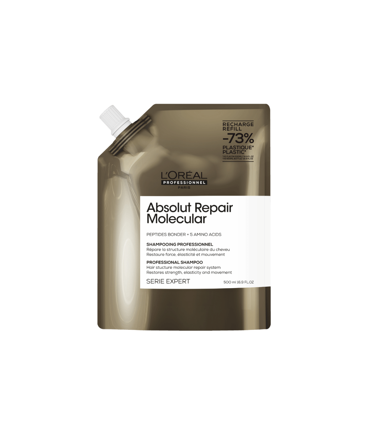 Shampooing recharge 500 mlGrâce à une découverte scientifique, Absolut Repair Molecular répare jusqu'à 2 ans de dommages en une seule application.