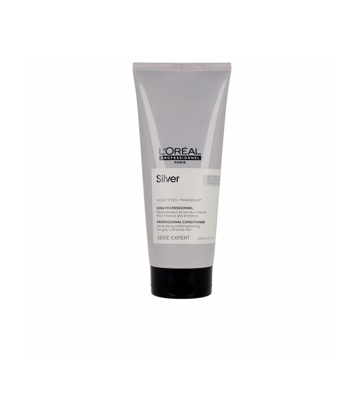 Après-shampooing 200 mlAppréciez Après-shampooing SILVER 200 ml, un soin spécialement formulé pour démêler et hydrater les cheveux tout en neutralisant les reflets jaunes indésirables. Idéal pour les cheveux blonds, gris ou méchés, cet après-shampooing révèle l'éclat naturel de votre couleur.