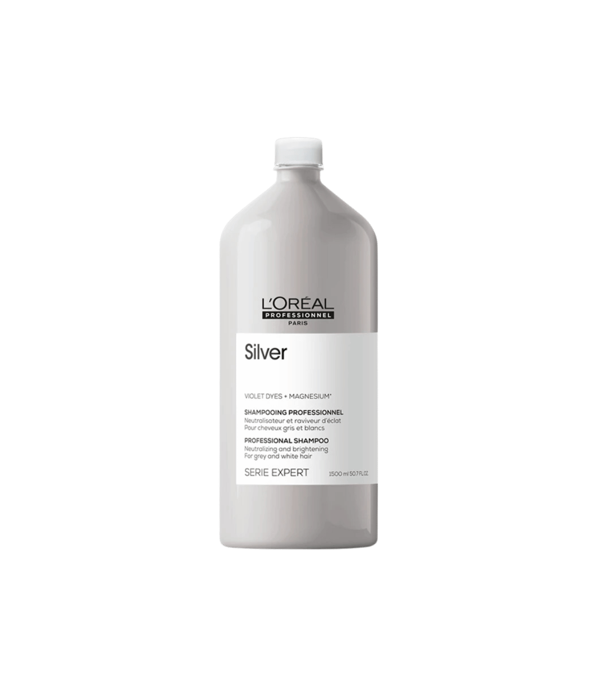 Shampoing 1500 mlDécouvrez Shampoing SILVER 1500 ml, un shampoing spécialement formulé pour les cheveux blonds, gris ou décolorés. Ce soin unique neutralise les reflets jaunes indésirables tout en nettoyant délicatement les cheveux.