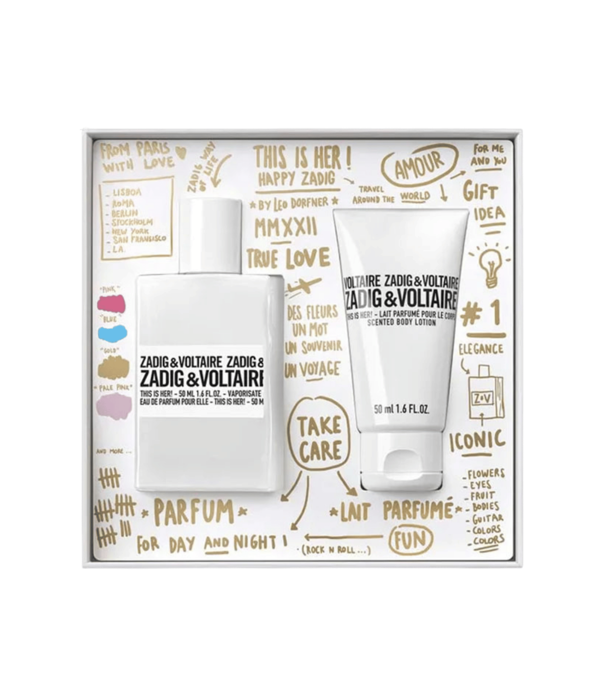 This is Her! de Zadig & Voltaire est un parfum féminin audacieux, sensuel et résolument contemporain. Pensé pour une femme libre, jeune d’esprit et pleine de caractère, il mêle douceur gourmande et élégance boisée dans un sillage inoubliable.