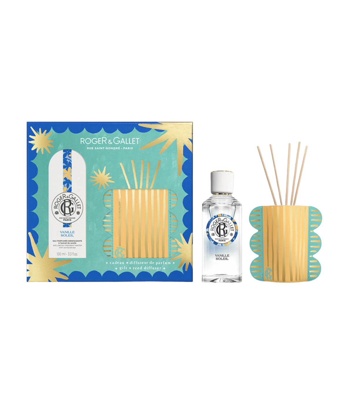 ROGER & GALLET — Coffret Bien‑Être Vanille Soleil — Eau Parfumée 100 ml + Mikado (Vanille • Jasmin • Fève Tonka)