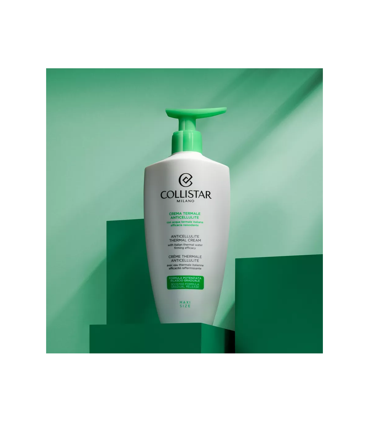 Découvrez la CRÈME THERMALE ANTI-CELLULITE de COLLISTAR, un traitement innovant qui associe les bienfaits d'une Eau Thermale Italienne unique à l'efficacité du Reprogram System. Ce complexe d'actifs végétaux offre une action spécifique, intensive et durable contre la peau d'orange, les accumulations de graisse et la perte de tonus.