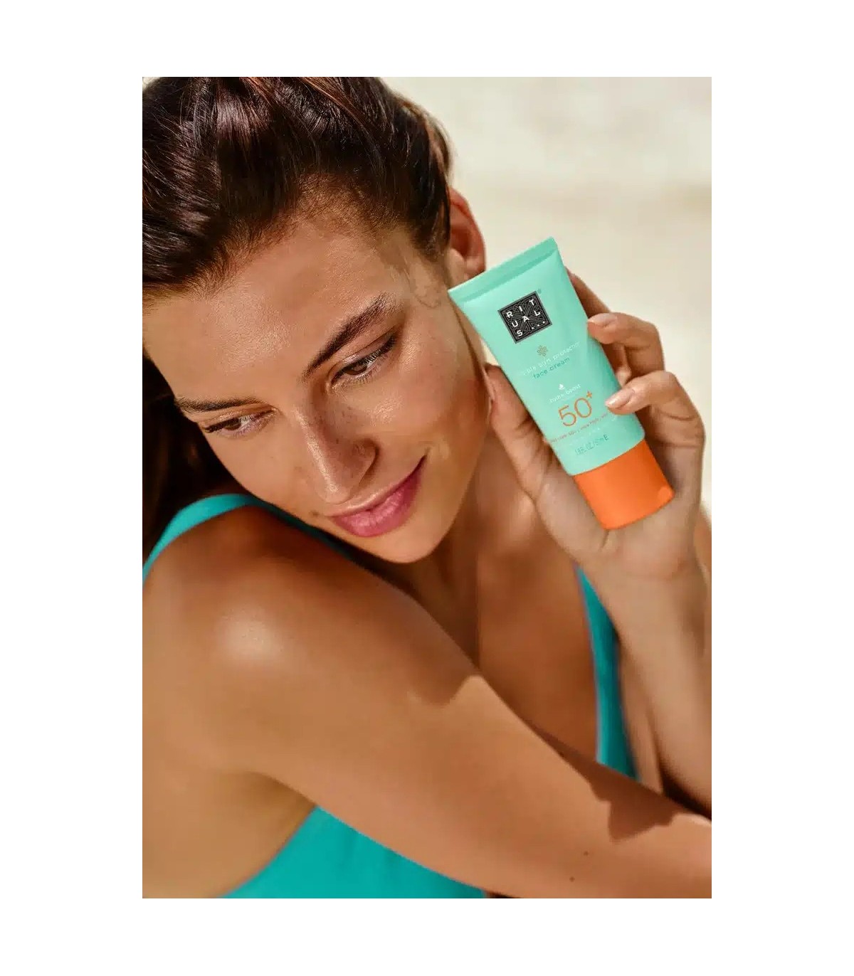 Prenez soin de votre peau avec The Ritual of Karma SPF50, une protection solaire efficace pour un visage éclatant et sain, même sous le soleil.