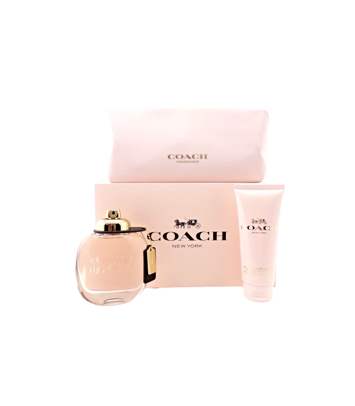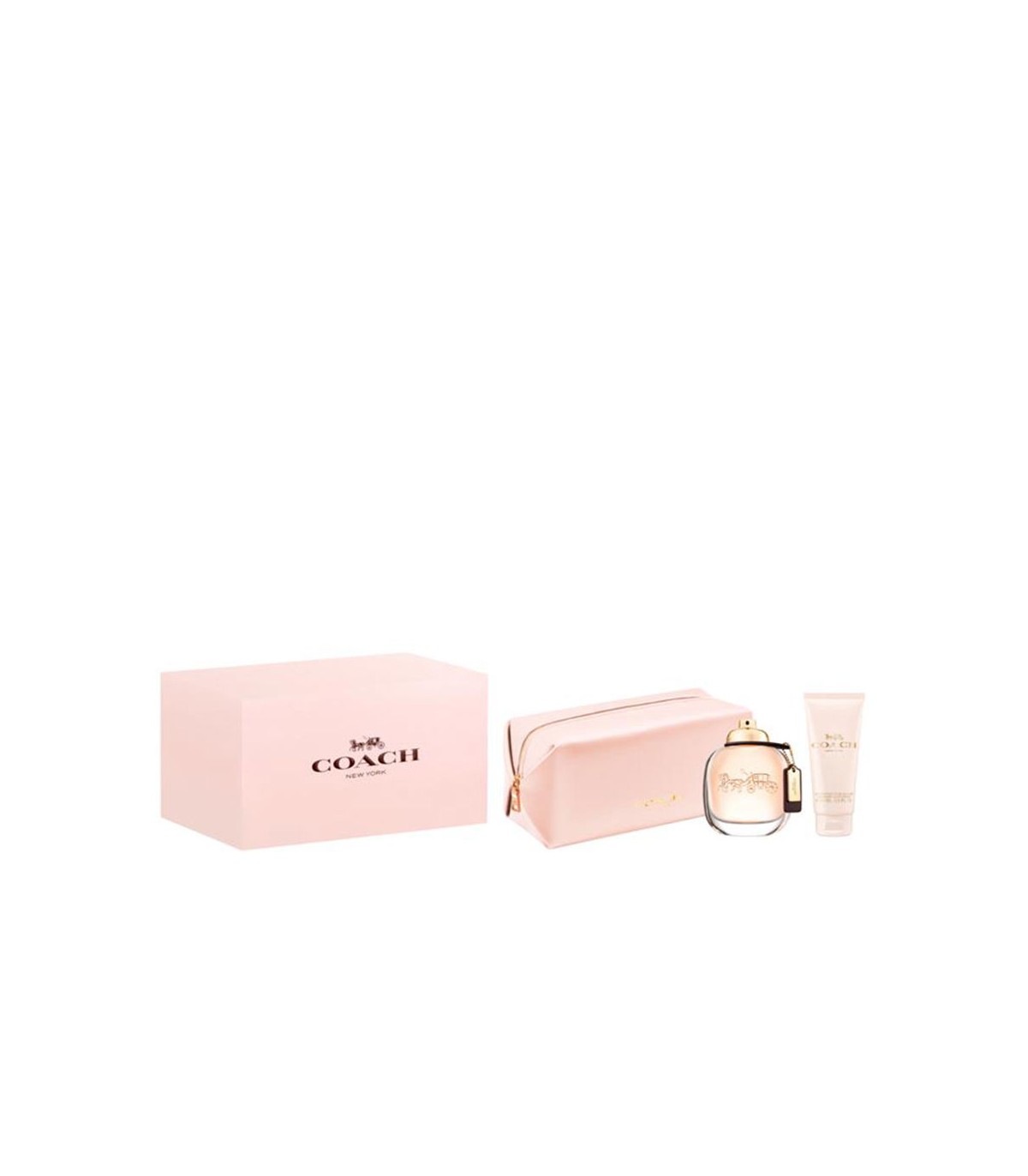 Coffret Coach Woman : Eau de Parfum 90 ml + Lait corps 100 ml + trousse. Un parfum floral élégant aux notes de rose, poire et bois de santal.