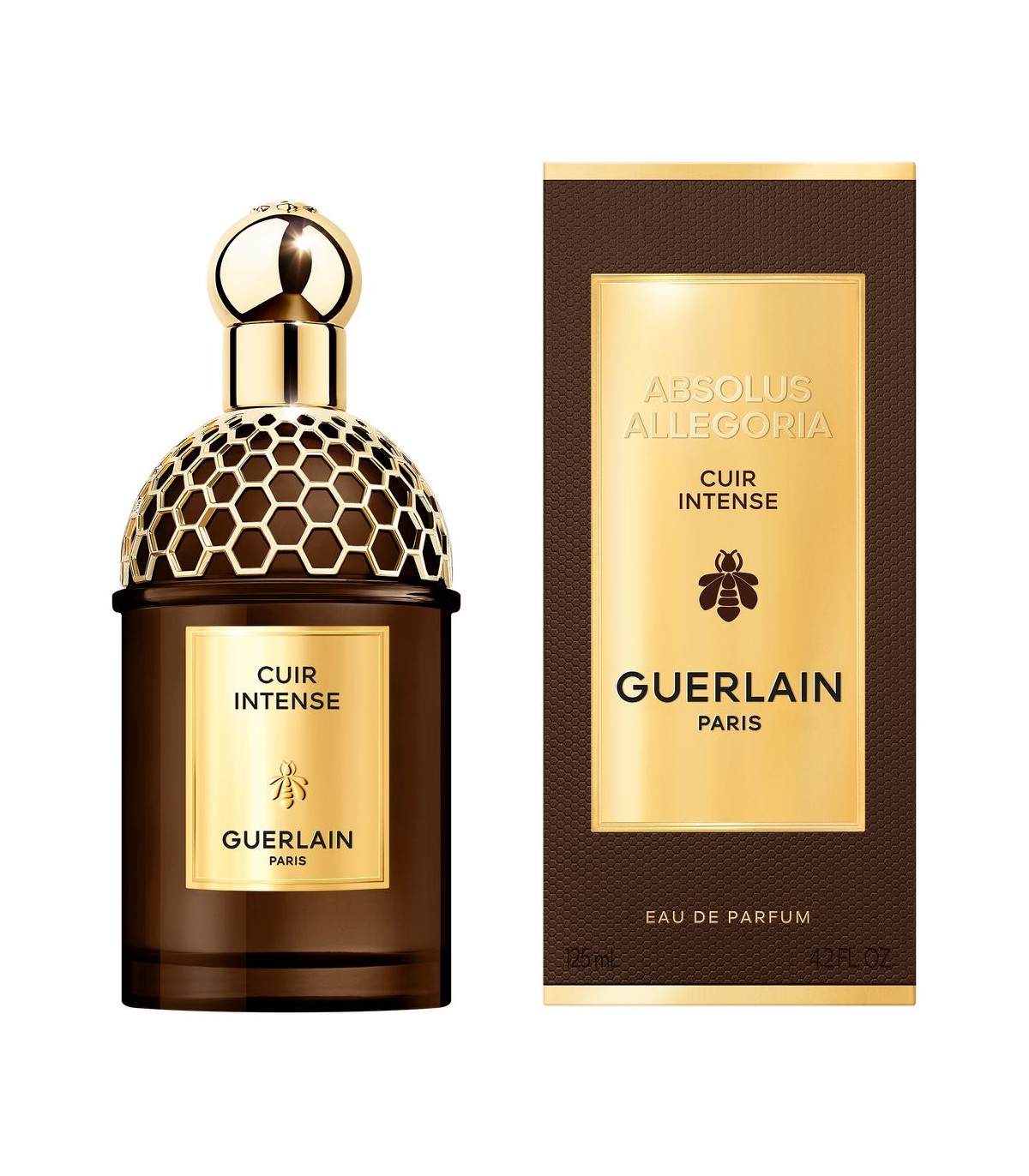 Cuir Intense est présenté dans un flacon emblématique de la collection Allegoria, fabriqué en France et réalisé à partir de 15% de verre recyclé. Son vaporisateur dévissable et son laquage travaillé en transparence facilitent le recyclage, démontrant l’engagement de Guerlain pour une beauté durable.