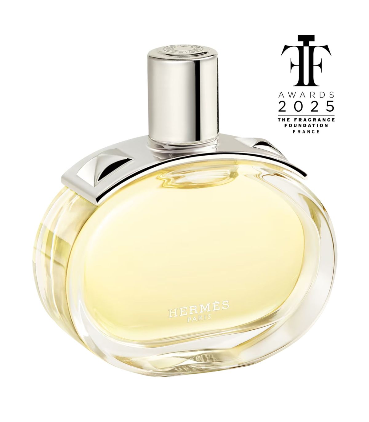 Le flacon, imaginé par Philippe Mouquet, est un véritable objet : courbes elliptiques douces contrebalancées par une plaque métallique décorée de clous pyramidaux; un clou final est même façonné dans la masse du verre, le rendant précieux comme un bijou. Disponible en 100 ml (également en 60 et 30 ml), Barénia est rechargeable via la recharge 125 ml vendue séparément — une approche durable qui prolonge la vie de l’objet. Parfait pour celles qui cherchent un sillage sophistiqué, intime et durable.