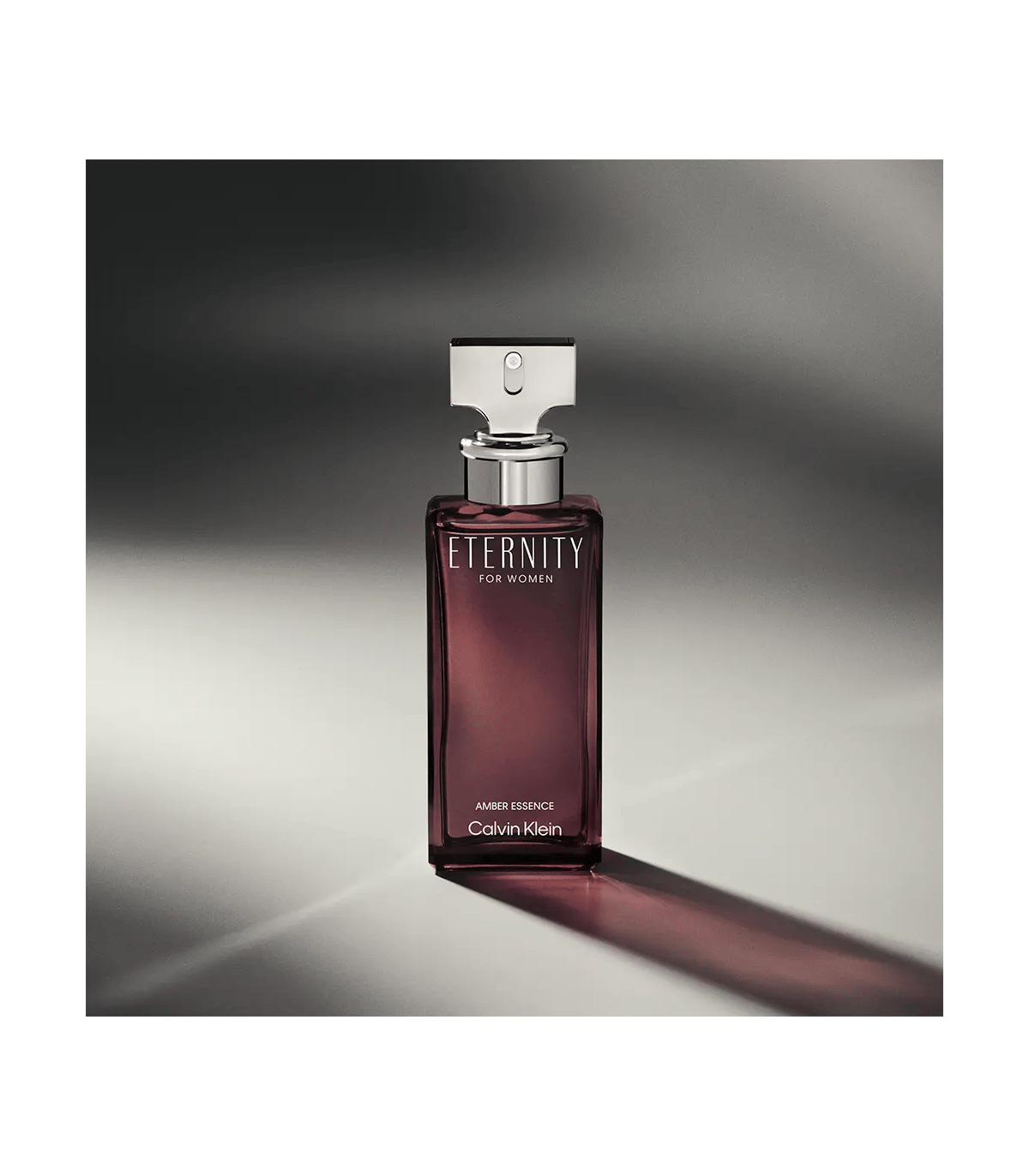 Le flacon de ETERNITY AMBER ESSENCE est une réinterprétation des lignes emblématiques de la collection ETERNITY. Il se présente dans un bordeaux profond, agrémenté de finitions argentées métalliques, reflétant l'élégance et le luxe de la fragrance.
