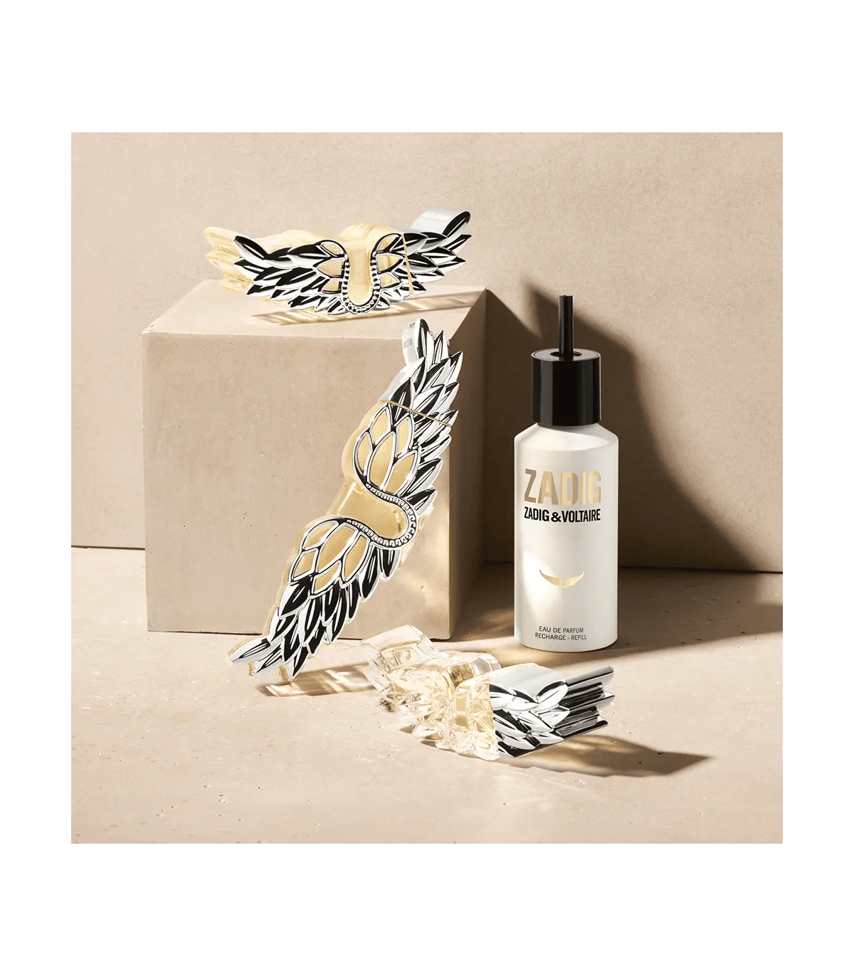 - Inspiration : Le flacon en forme d'aile s'inspire du logo emblématique de ZADIG&VOLTAIRE, symbolisant la liberté et l'esprit rebelle.