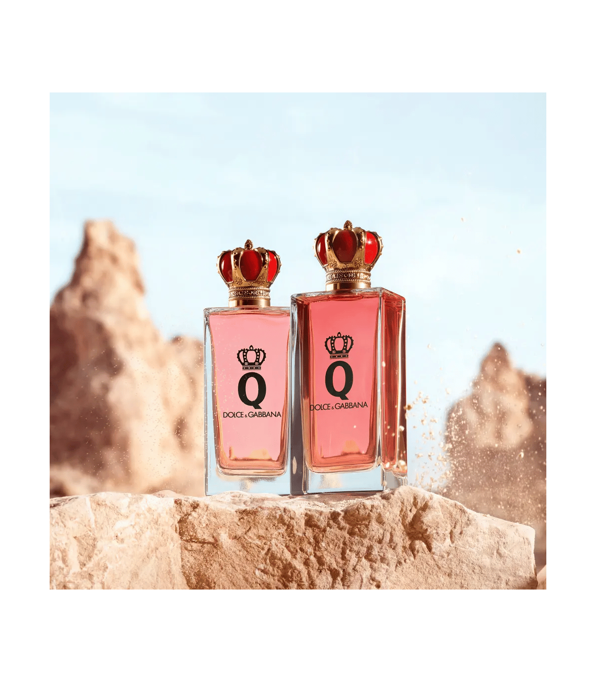 Le flacon conserve l’essence du Q originel, avec une couronne dorée et rouge en capuchon et un verre intensément coloré, dévoilant un parfum encore plus puissant et envoûtant.