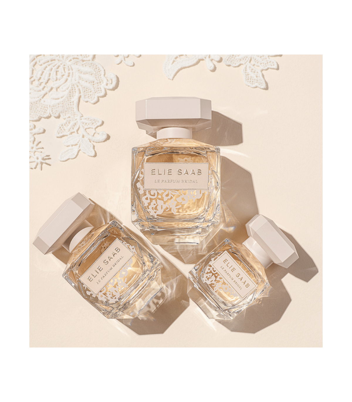 Un parfum somptueux, à l’image de la robe nuptiale Elie Saab, dont chaque couture reflète la lumière.