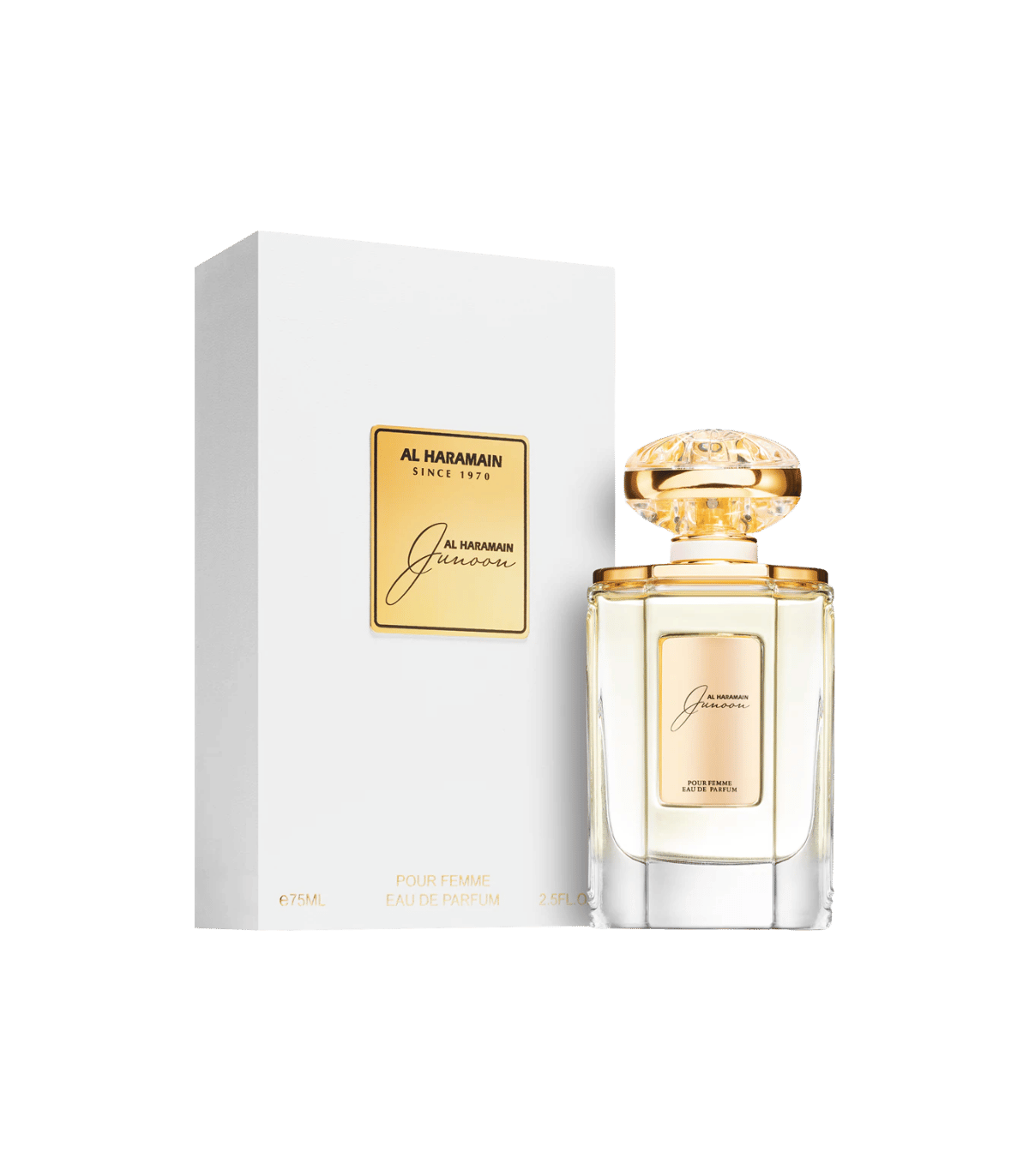 Eau de parfum 75 mlAl Haramain Junoon : Une eau de parfum pour femmes qui incarne le charme et le mystère des senteurs orientales. Avec ses notes envoûtantes, c'est une fragrance idéale pour celles qui souhaitent captiver et séduire.
