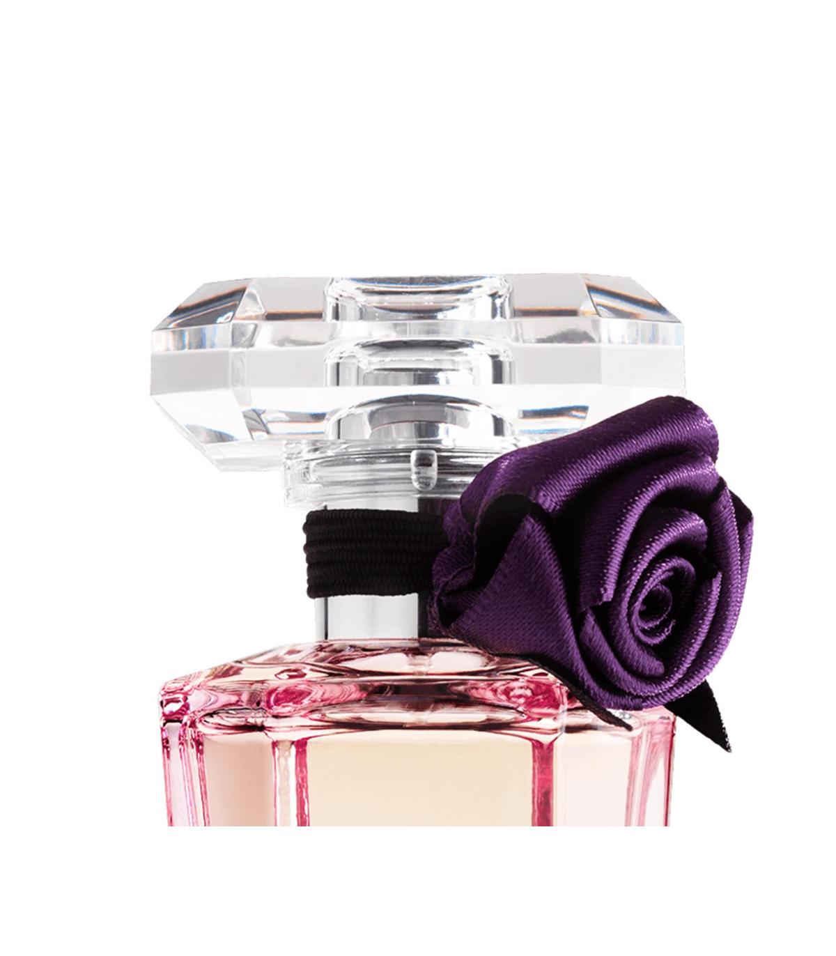 Son flacon bijou, aux dégradés de rose et de violet, orné d’une rose satinée, reflète à merveille l’âme romantique et la magie nocturne de Trésor Midnight Rose.