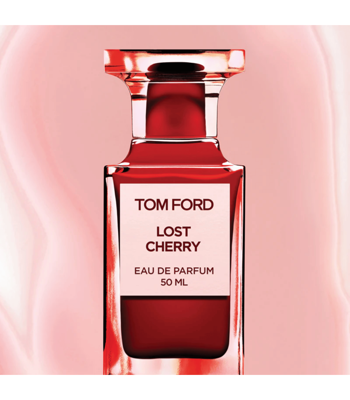 Tom Ford Lost Cherry — Eau de parfum : liqueur de cerise, griotte et amande en ouverture, cœur de rose de Turquie, jasmin sambac et prune, fond riche de fève tonka, santal, vétiver, cèdre et vanille — intense, suave et captivant.