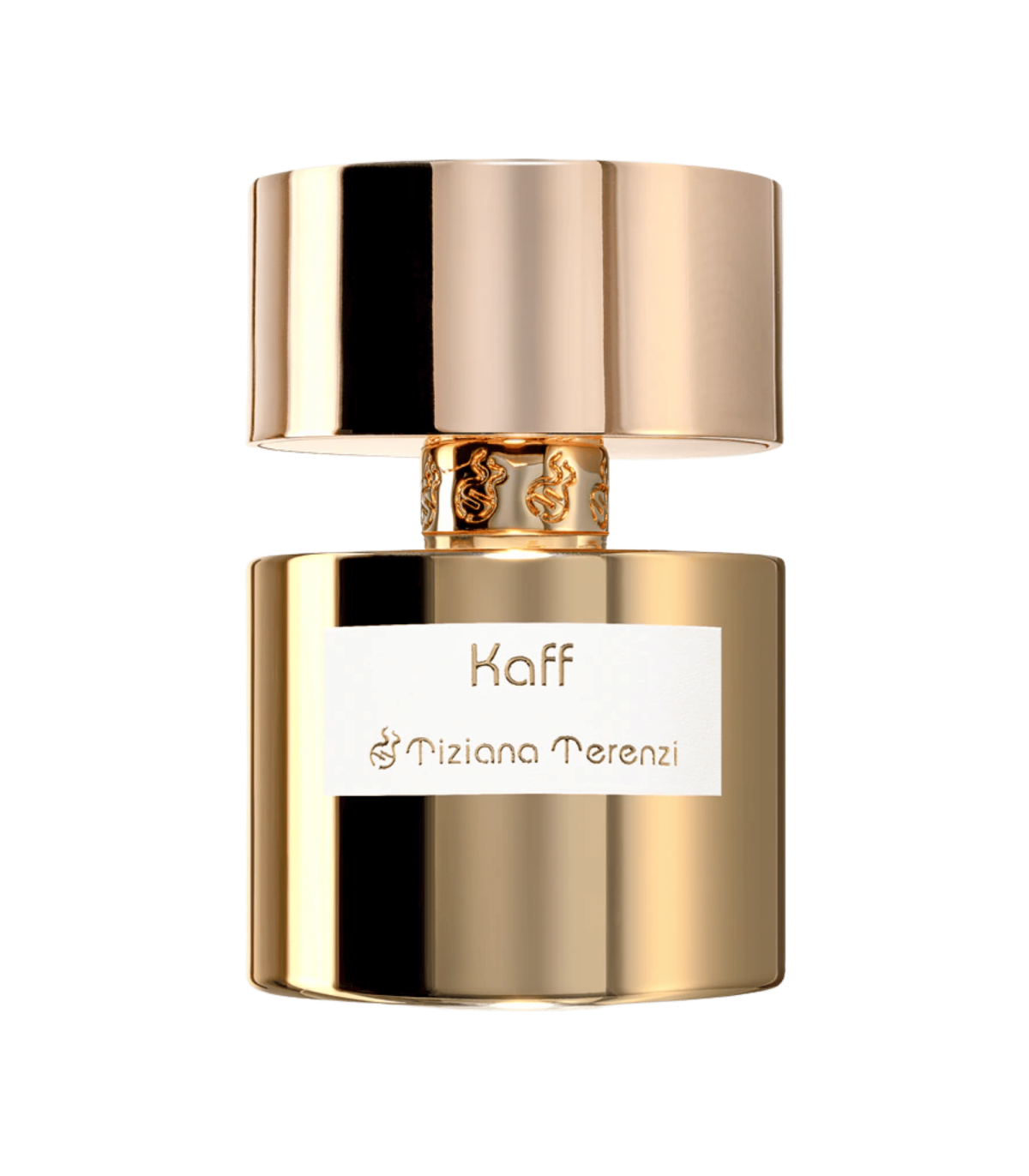 Tiziana Terenzi Kaff — Parfum unisexe : tête piquante (genévrier, iris blanc, poivre rose, bergamote, gingembre), cœur riche (cuir, iris, orris root, ambre gris, magnolia), fond boisé‑charnu (vétiver, cèdre, bois de santal, fèves de tonka) — une composition aromatique, florale et boisée, idéale pour affirmer sa présence.