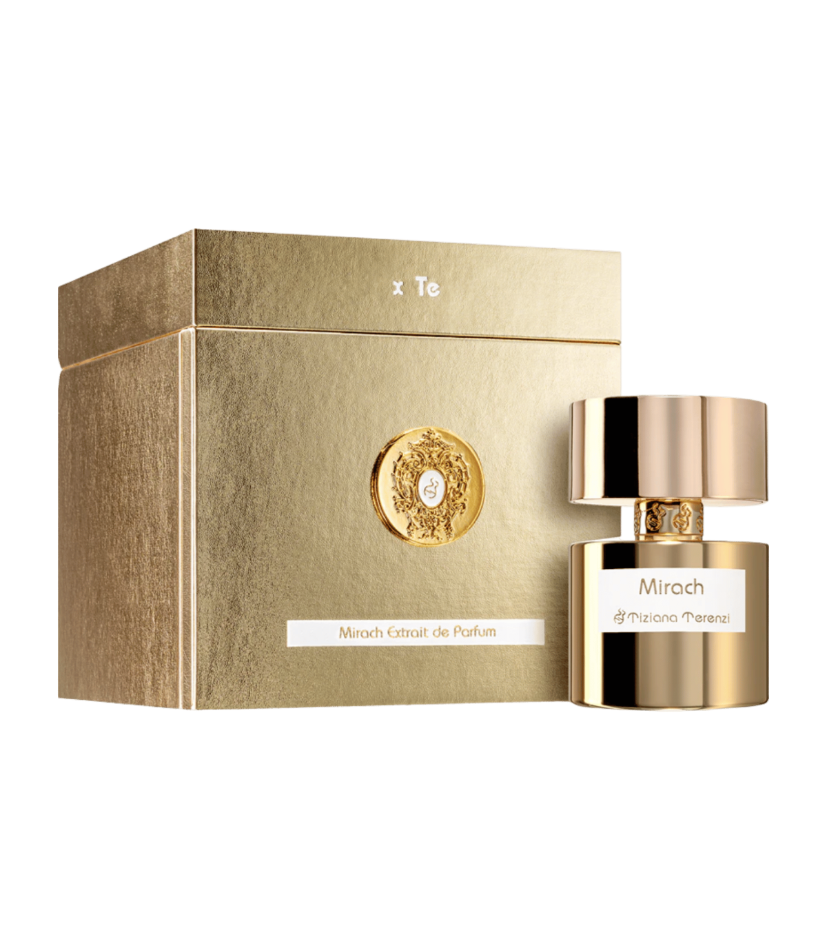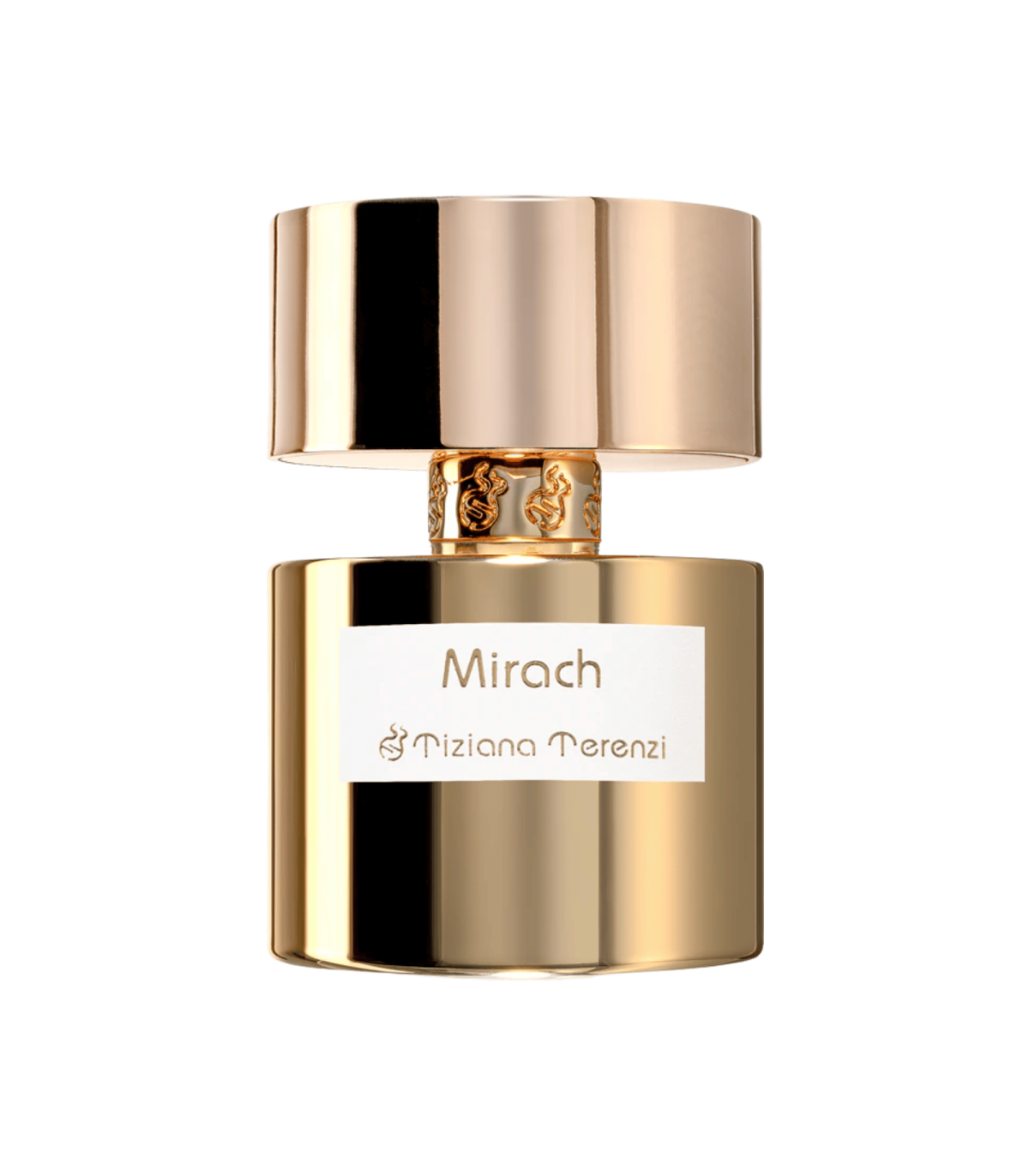Tiziana Terenzi Mirach — Parfum : un accord épicé‑floral où la rose et le safran rencontrent l’oud et l’ambre gris, soutenus par un fond riche de benzoïne, bois d’agar, vanille et santal — intense, sophistiqué et unisexe.