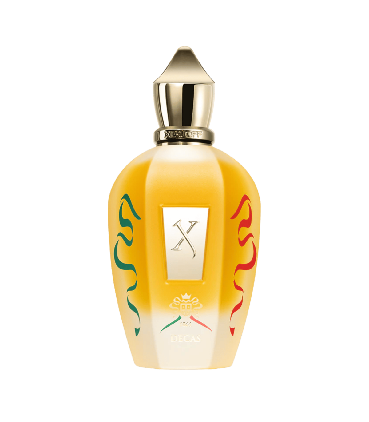 XJ 1861 Decas de Xerjoff, lancé en 2021 dans la collection commémorative 1861, est une eau de parfum mixte qui célèbre la générosité et la magie de l’Italie. L’ouverture dévoile l’éclat juteux de la mandarine sauvage associé à une touche herbacée et fumée de tabac. Le cœur s’appuie sur des résines nobles — benzoïne et opoponax — et l’élégance terreuse de l’orris root, créant un accord riche, suave et légèrement balsamique. La base réchauffe l’ensemble avec des notes résineuses et une vanille Bourbon gourmande, soutenue par un musc enveloppant pour une longue tenue et un sillage séducteur.