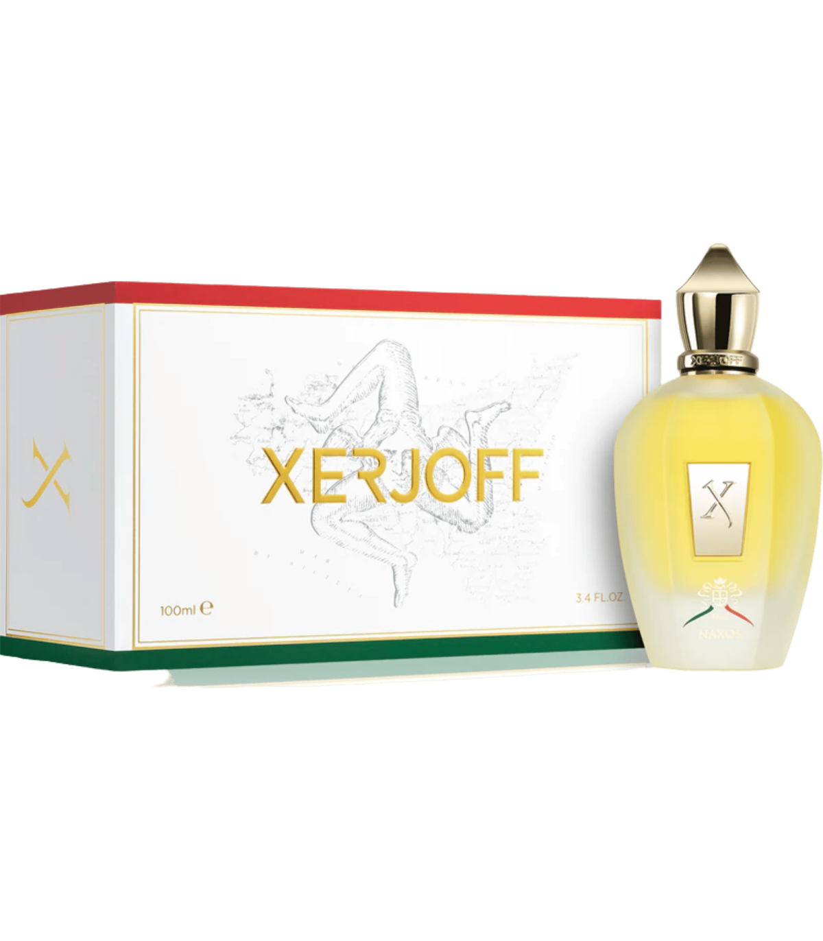 Xerjoff XJ 1861 Naxos — Eau de Parfum unisexe : ouverture hespéridée (bergamote, citron, lavande), cœur gourmand et épicé (jasmin, cannelle, miel, bois de cachemire) et fond chaud (tabac, fèves de tonka, vanille) — une composition aromatique‑épicée, solaire et raffinée.