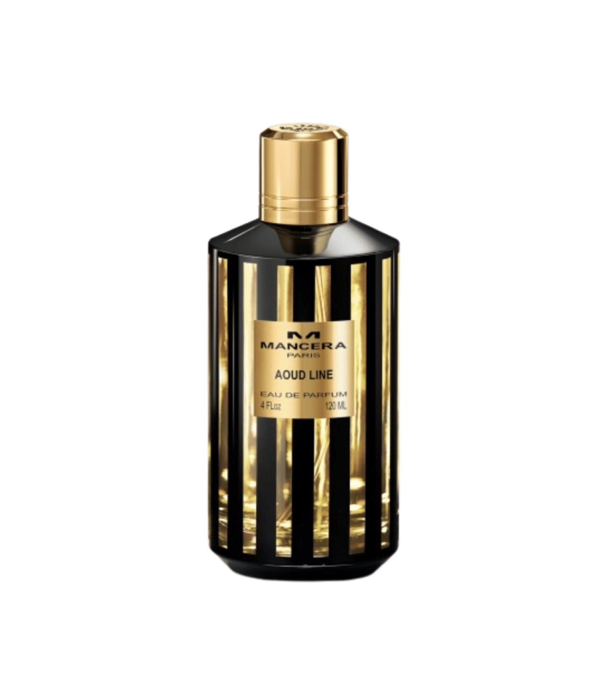 Mancera Aoud Line — Eau de Parfum : ouverture riche d’oud laotien, vanille et rose turque, cœur boisé et feuilles de patchouli, fond ambré gourmand avec une touche de framboise — une interprétation luxueuse et puissante de l’oud.