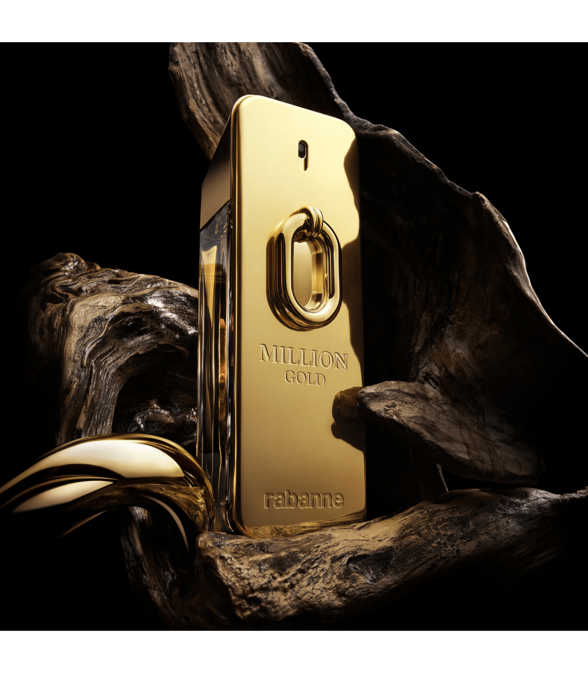 Le flacon, dans sa forme emblématique de lingot d'or, symbolise la puissance et l'audace du succès. L'édition Million Gold Intense intègre un nouveau détail, un lien XL, qui renvoie à l’histoire de la Maison Rabanne et réaffirme le luxe et l'élégance de la fragrance. Million Gold Intense est un parfum pour l'homme moderne qui ose se surpasser, un véritable symbole de réussite et d'assurance.