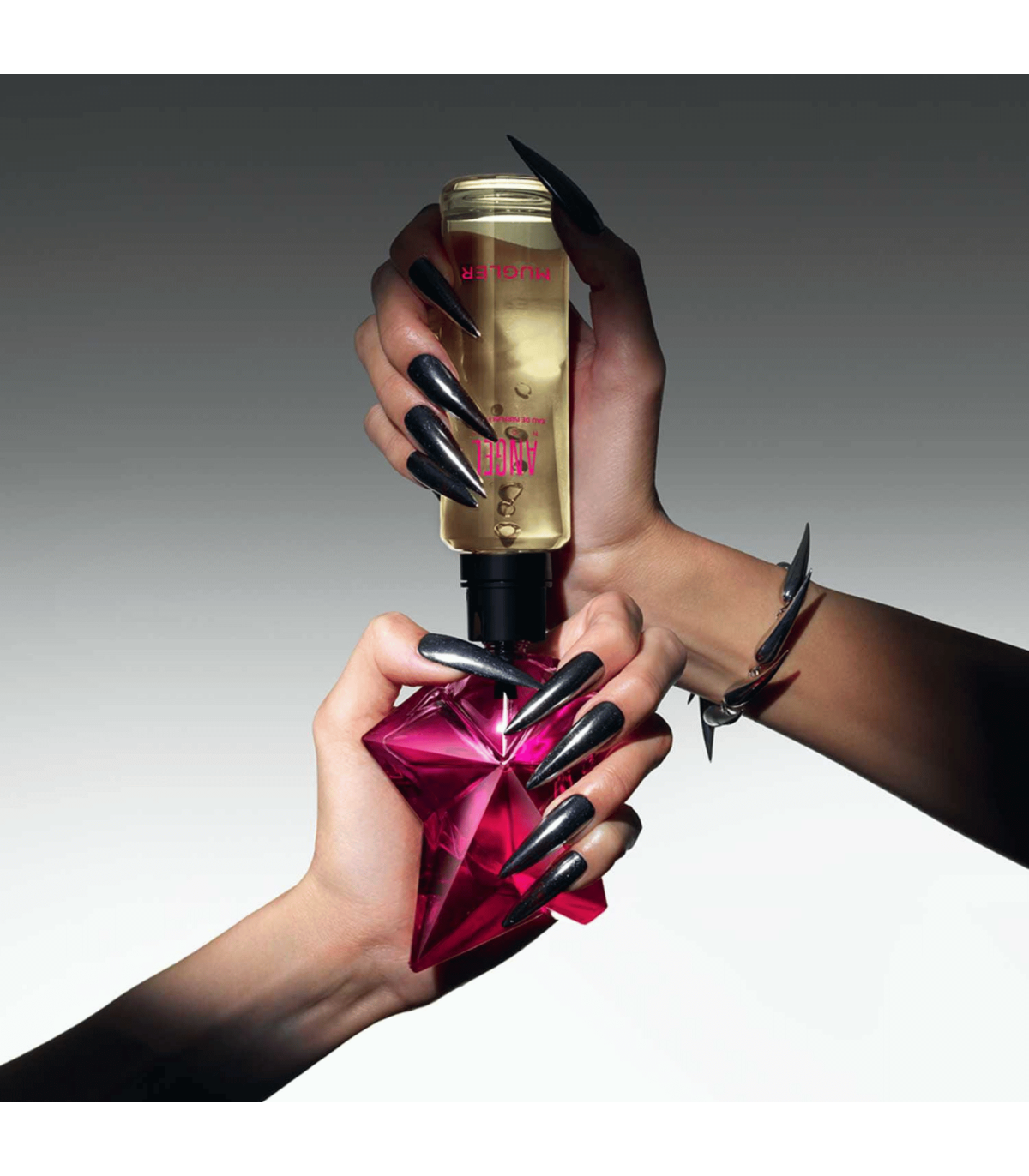Pensée pour la femme audacieuse et inspirante, Angel Nova affirme sa singularité par une composition moderne et énergisante. Logée dans l’étoile asymétrique MUGLER, réinventée ici en rose vibrant, la fragrance est disponible en formats rechargeables (25/50/100 ml) et permet de recharger son flacon via la recharge 100 ml ou la fontaine MUGLER — un geste durable qui prolonge la vie du flacon iconique.