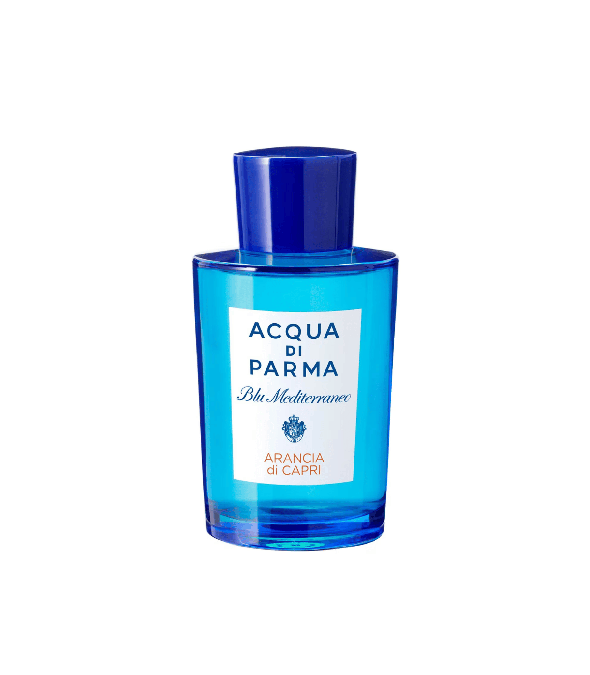 Arancia di Capri se présente dans un flacon emblématique d'Acqua di Parma, inspiré par les influences Art déco. Fabriqué en verre pur et luxueux, teinté d'un bleu profond, il évoque la transparence et la sérénité de la mer.
