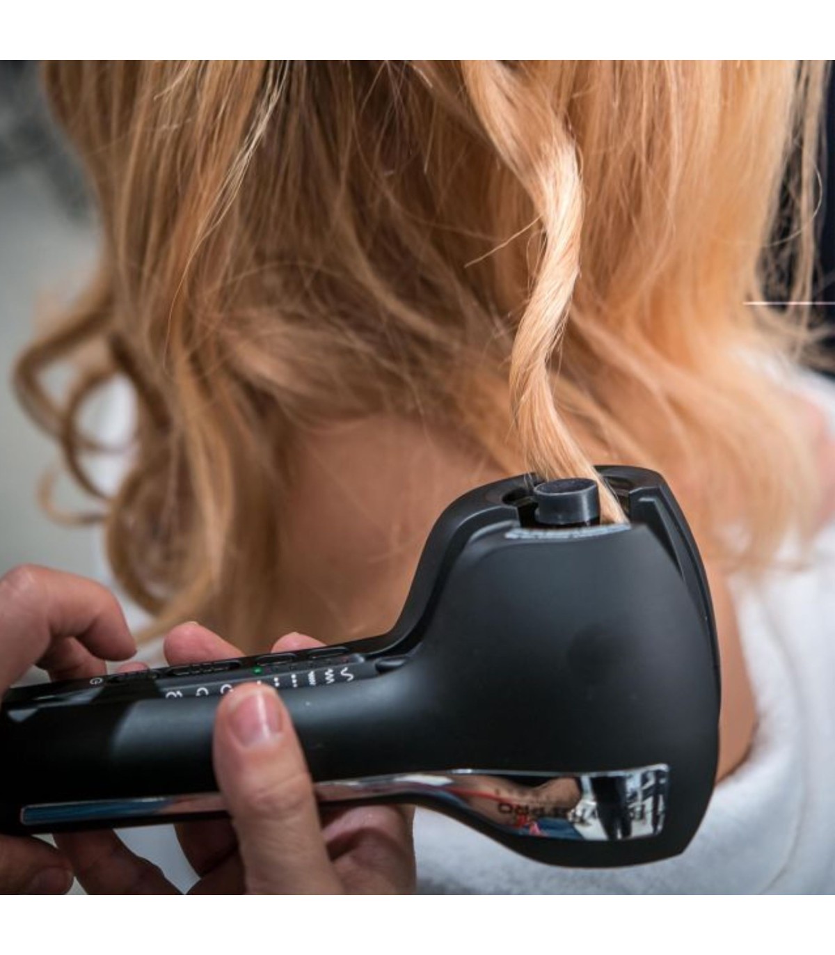 Automatic Curl Management : réglage automatique du barillet, de la tension et du temps de chauffe pour des boucles uniformes.