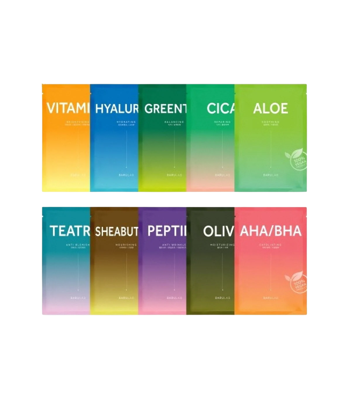 Le masque tissu The Clean Vegan Mask - Olive de Barulab (23 g) est un soin nourrissant et illuminateur formulé pour les peaux sèches, ternes ou matures.