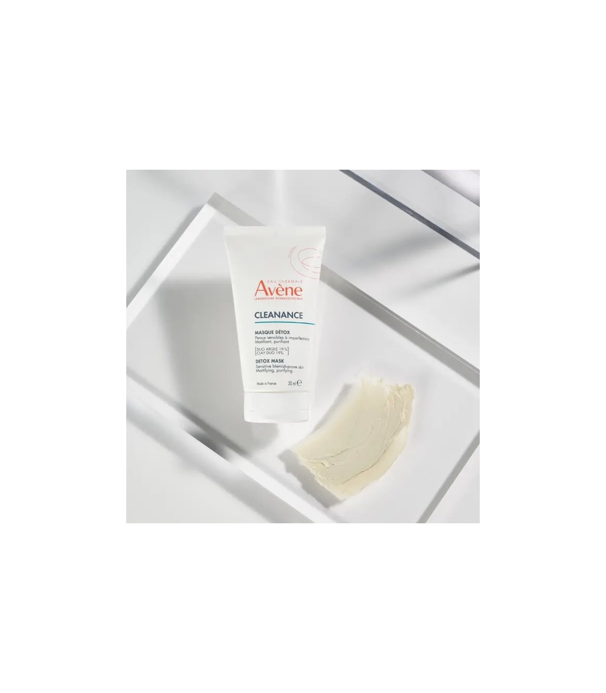 Masque détoxifiant 50 mlLe masque détoxifiant CLEANANCE d’Avène est conçu pour purifier et désincruster les peaux grasses et à tendance acnéique. Sa formulation unique aide à éliminer les impuretés tout en offrant un moment de détente pour la peau.