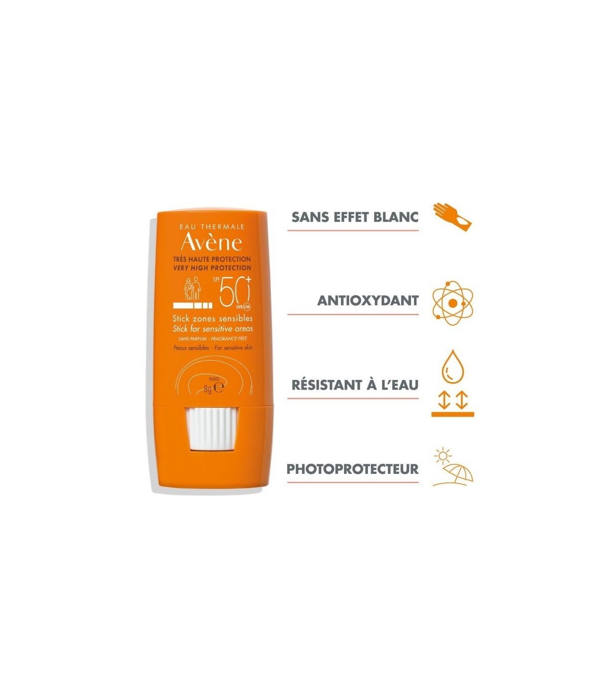 Stick zones sensibles SPF50+ 8 mlLe Stick Solaire Haute Protection Zones Sensibles SPF50+ 8 ml est un soin spécifiquement formulé pour offrir une protection solaire très élevée aux zones sensibles du visage, telles que le contour des yeux, les lèvres et le nez. Sa texture compacte et résistante à l'eau en fait un allié indispensable pour les activités en extérieur.