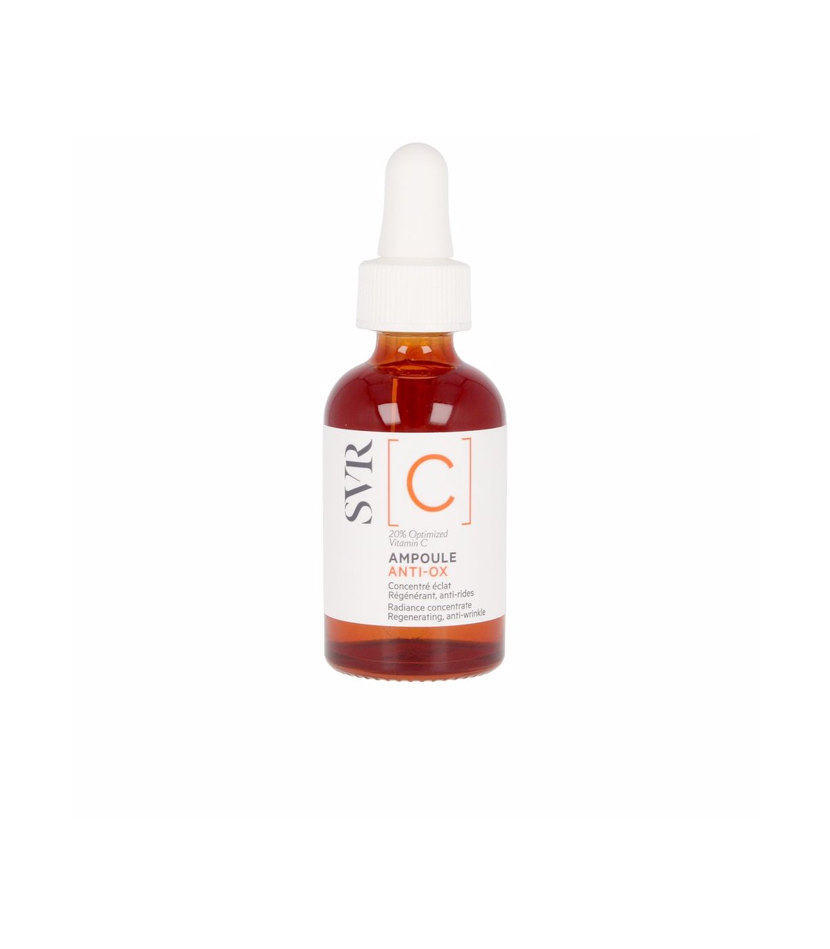 Ampoule anti-ox 30 mlLa C Ampoule Anti-Ox Concentré Éclat de SVR est un sérum formulé à base de 20% de vitamine C stabilisée, destinée à protéger la peau des agressions extérieures et à lui redonner de l'éclat. Ce soin antioxydant puissant est idéal pour lutter contre les signes de fatigue, les taches pigmentaires et les premiers signes du vieillissement cutané, tout en améliorant la luminosité du teint.