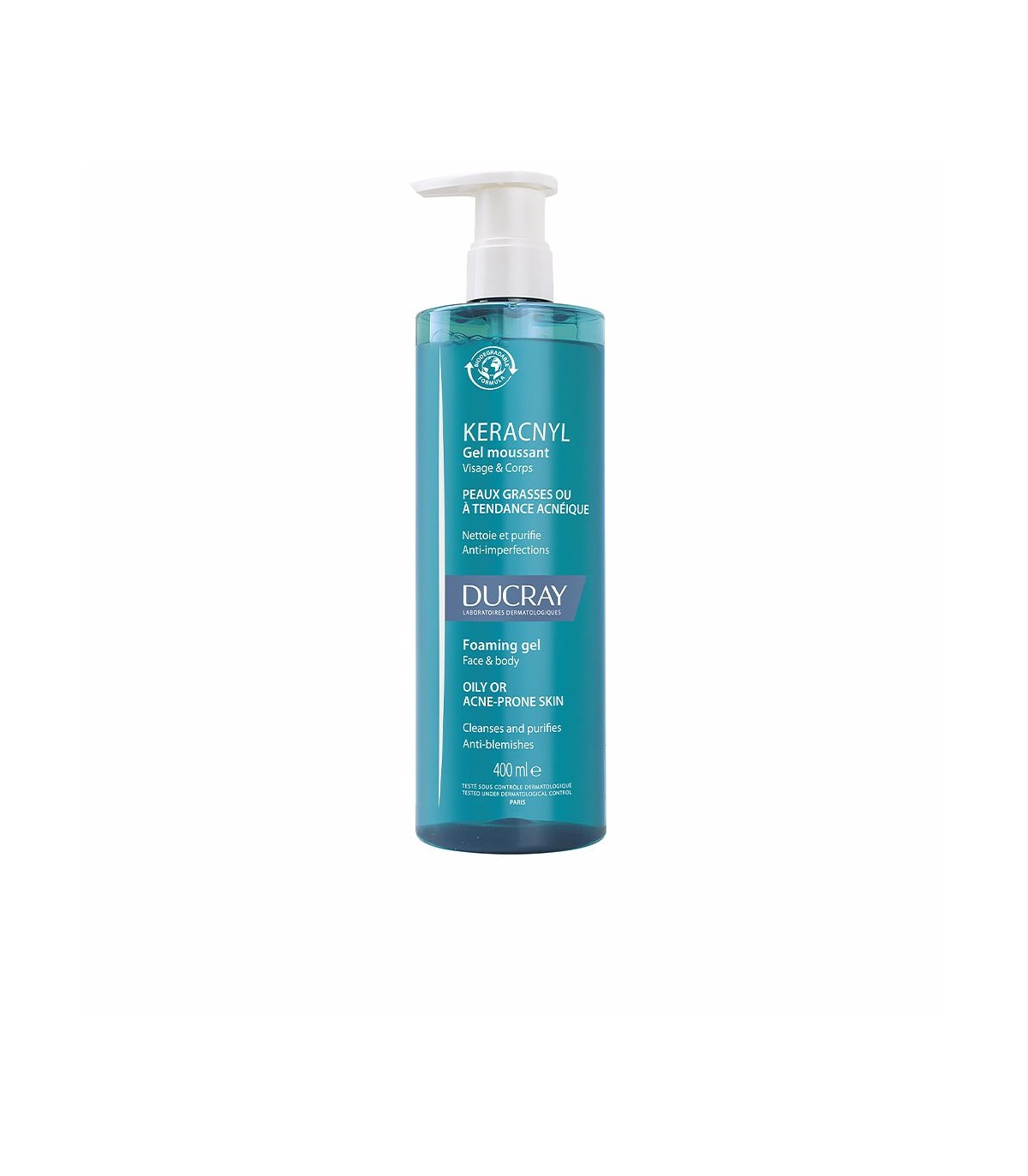Gel nettoyant 400 mlLe Gel Nettoyant KERACNYL est spécialement formulé pour nettoyer en profondeur les peaux grasses et sujettes aux imperfections. Grâce à sa texture légère et son efficacité, il élimine les impuretés et l'excès de sébum, laissant la peau propre et fraîche.