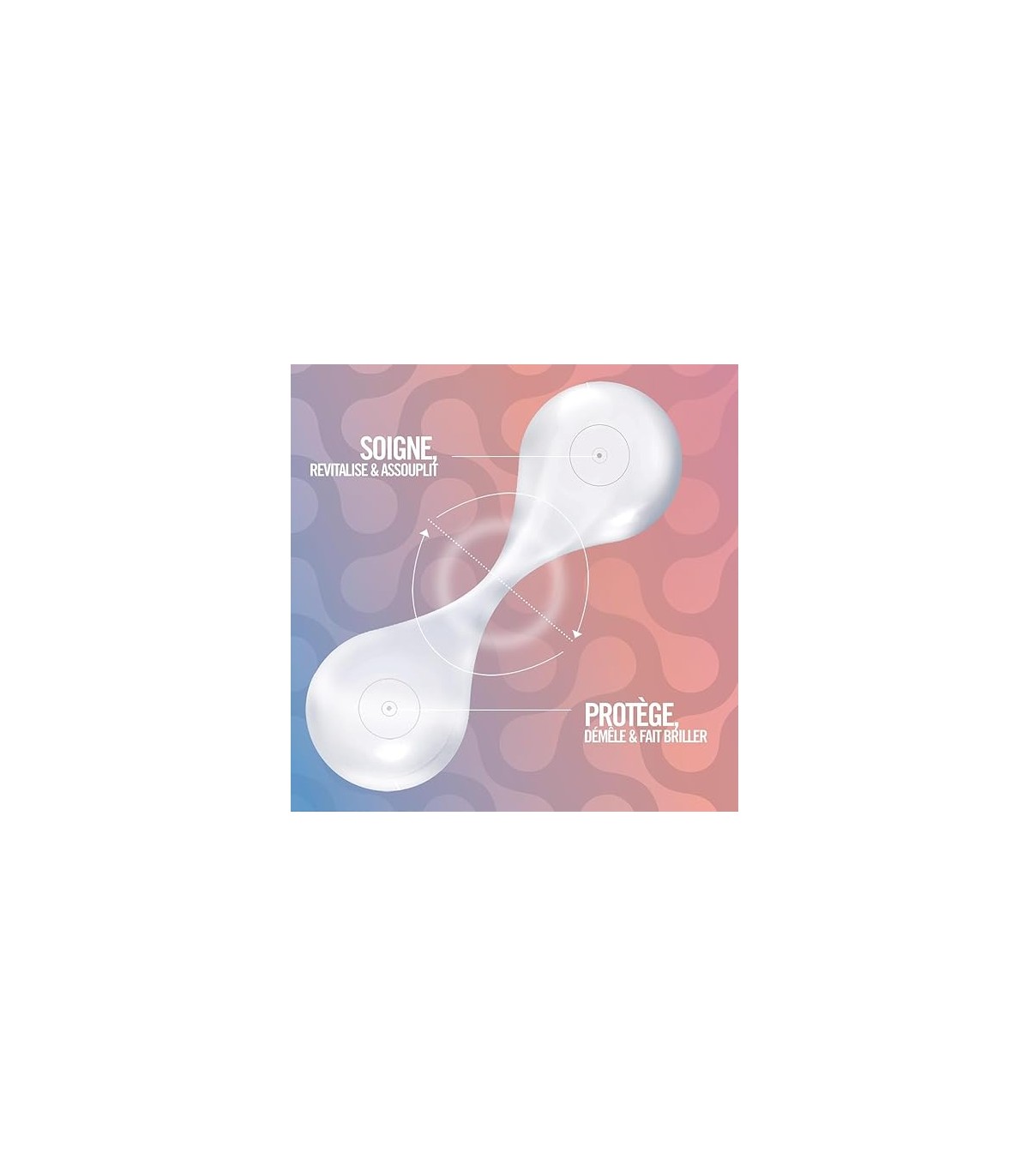 La phase supérieure démêle et fait briller. La phase inférieure hydrate et nourrit la fibre.