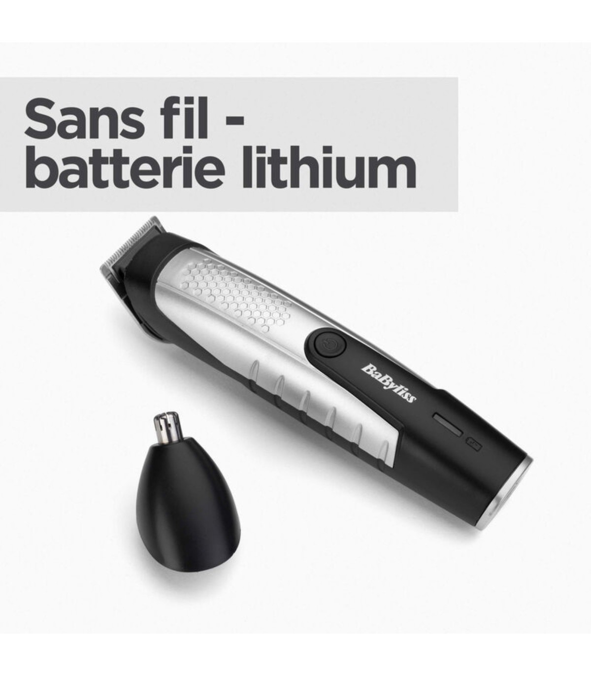 La tondeuse barbe BaByliss Lithium Power est l'allié quotidien pour entretenir tous types de barbes, des plus courtes aux plus longues. Sans fil pour une liberté totale de mouvement, elle offre 14 hauteurs de coupe précises de 0,5 à 10 mm grâce à ses sabots variés. Équipée d'une batterie lithium-ion performante (80 min d'autonomie pour 3h de charge), de lames larges en acier inoxydable et d'une tête lavable, elle assure un rasage net, des contours nets et un nettoyage facile. Son design ergonomique et moderne garantit confort et précision pour un look impeccable.[1]
