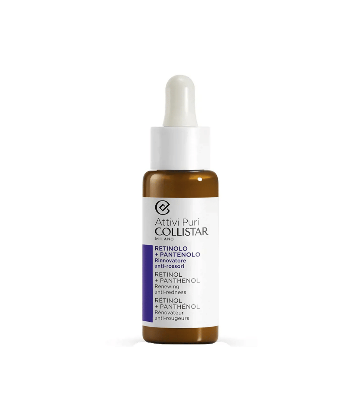 Ce Sérum Anti-Rougeurs et Anti-Âge de la gamme Attivi Puri de Collistar est formulé avec la dose idéale d'actifs pour garantir une efficacité et une tolérance maximales. À base d’hydroxypinacolone retinoate (HPR), un dérivé du rétinol hautement tolérable, il offre tous les bienfaits de la molécule traditionnelle même aux peaux les plus sensibles. Le sérum stimule le renouvellement cellulaire, estompe les rides et affine le grain de peau. Enrichi en panthénol, il apaise les rougeurs, répare la barrière cutanée et agit en synergie avec le rétinol HPR pour stimuler la production des fibroblastes.