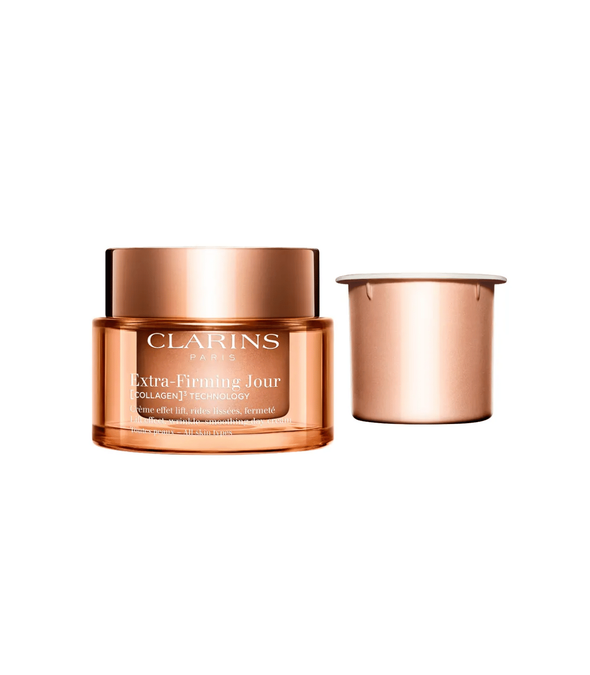 La Crème de Jour Raffermissante de Clarins est une formule avancée qui allie une TECHNOLOGIE exclusive [COLLAGEN] à trois actifs pro-collagène :