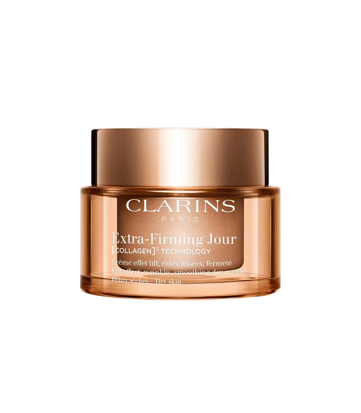 Crème de jour peaux sèches 50 mlLa Crème de Jour Raffermissante de Clarins est une formule innovante de nouvelle génération qui combine une TECHNOLOGIE exclusive [COLLAGEN] avec trois actifs pro-collagène puissants : les polypeptides de collagène, l'extrait de pécan et l'extrait de mitracarpus bio. Ensemble, ces ingrédients agissent pour améliorer la quantité, la qualité et la structure du collagène, augmentant ses réserves jusqu’à 53 %.