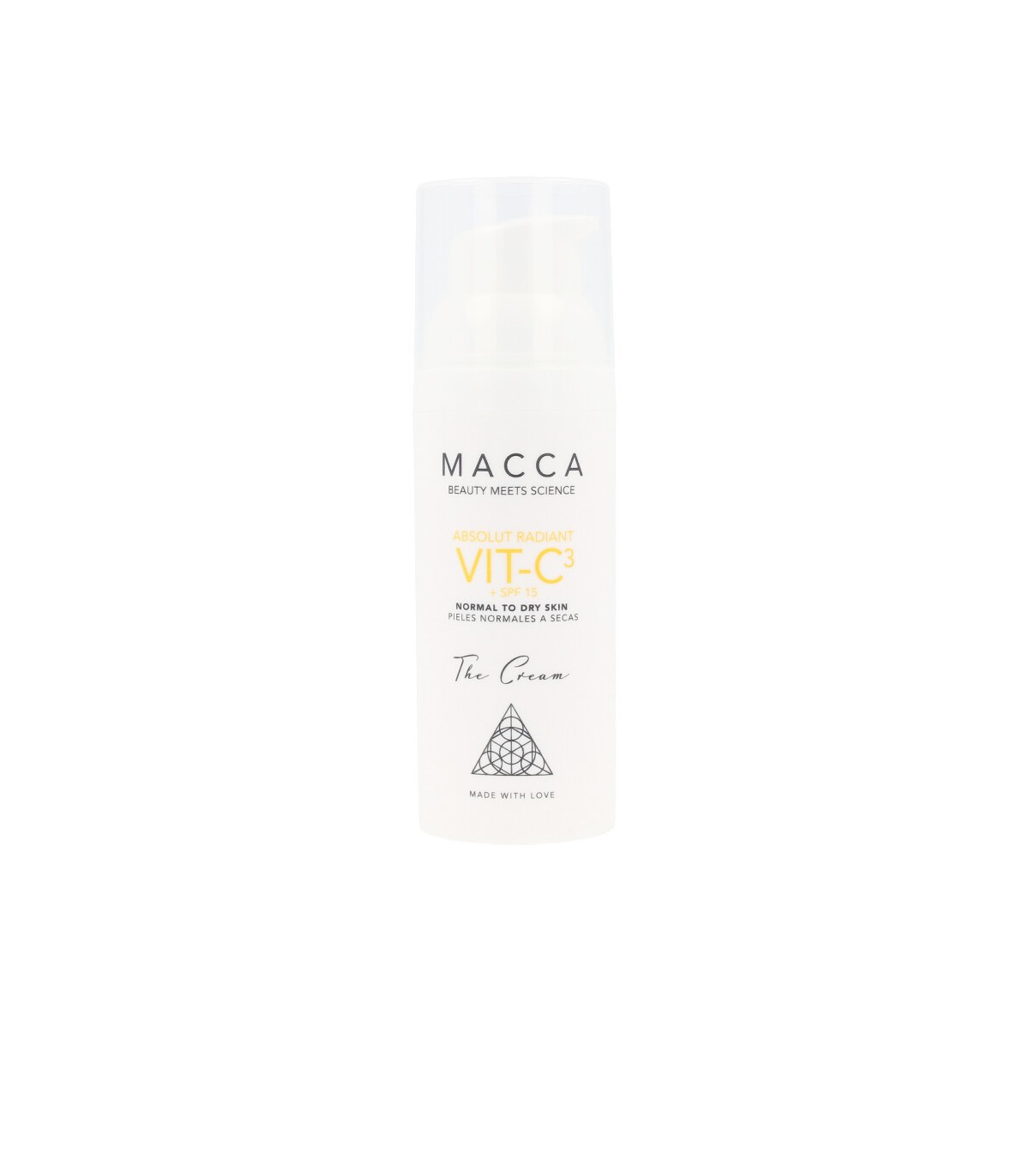 ABSOLUT RADIANT VIT-C la crème SPF15 de MACCA est une innovation en matière de soin éclaircissant pour le visage, spécifiquement conçue pour les peaux normales à sèches. Cette crème allie les bienfaits antioxydants de la vitamine C et de l'extrait de grenade avec une protection solaire, offrant ainsi une solution complète pour une peau éclatante et protégée. Voici un résumé détaillé de ses caractéristiques et avantages :