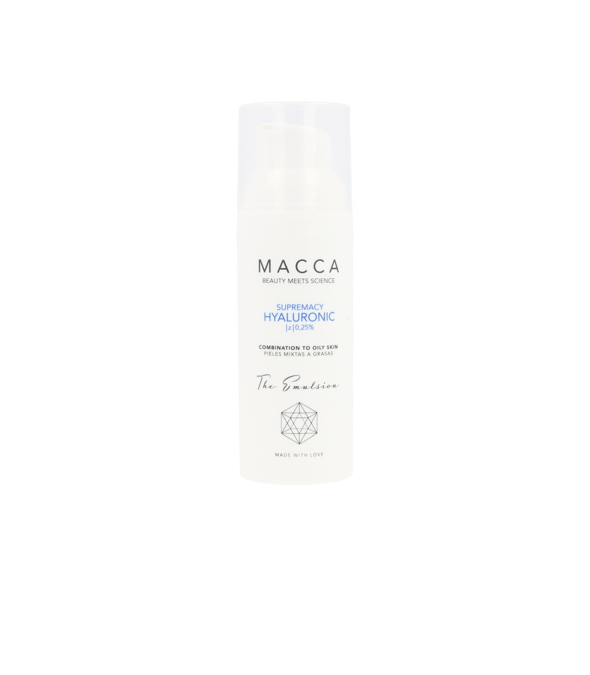 En résumé, la SUPREMACY HYALURONIC l'émulsion de MACCA est une solution hydratante avancée qui non seulement hydrate efficacement mais améliore également la qualité globale de la peau, tout en respectant les besoins spécifiques des peaux mixtes à grasses.